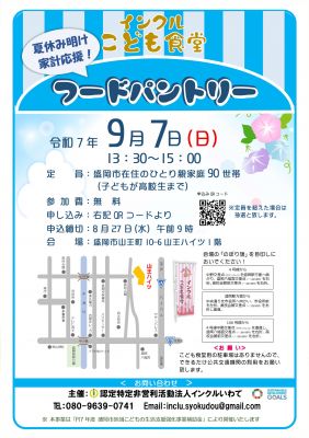 ●会 場:盛岡市山王町10-6 山王ハイツ1階 インクルこども食堂